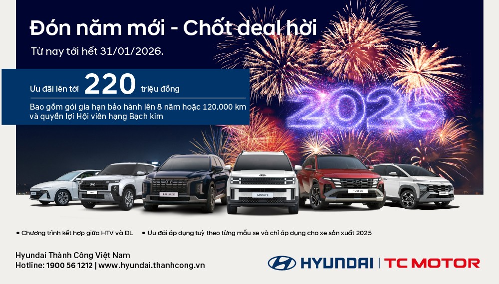 Chương trình với tên gọi “Đón năm mới – Chốt deal hời”, với tổng giá trị ưu đãi lên tới 220 triệu đồng, cùng quyền lợi giá trị khác áp dụng cho các dòng xe Hyundai.